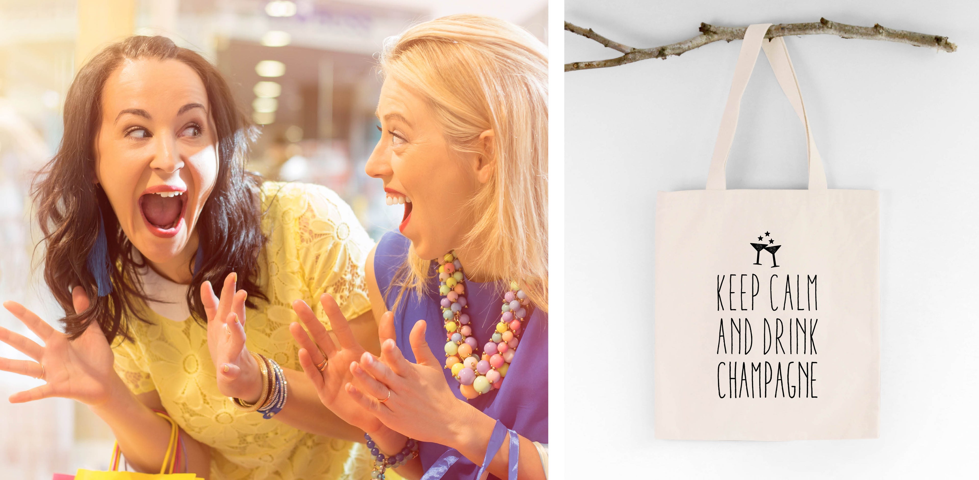 Bio-Stoffbeutel mit Spruch:"Keep calm and drink Champagne" Weil Panik nie stilvoll war – aber ein Glas Champagner schon.Dieser Bio-Stoffbeutel ist dein glamouröses Statement für Alltag, Afterwork...