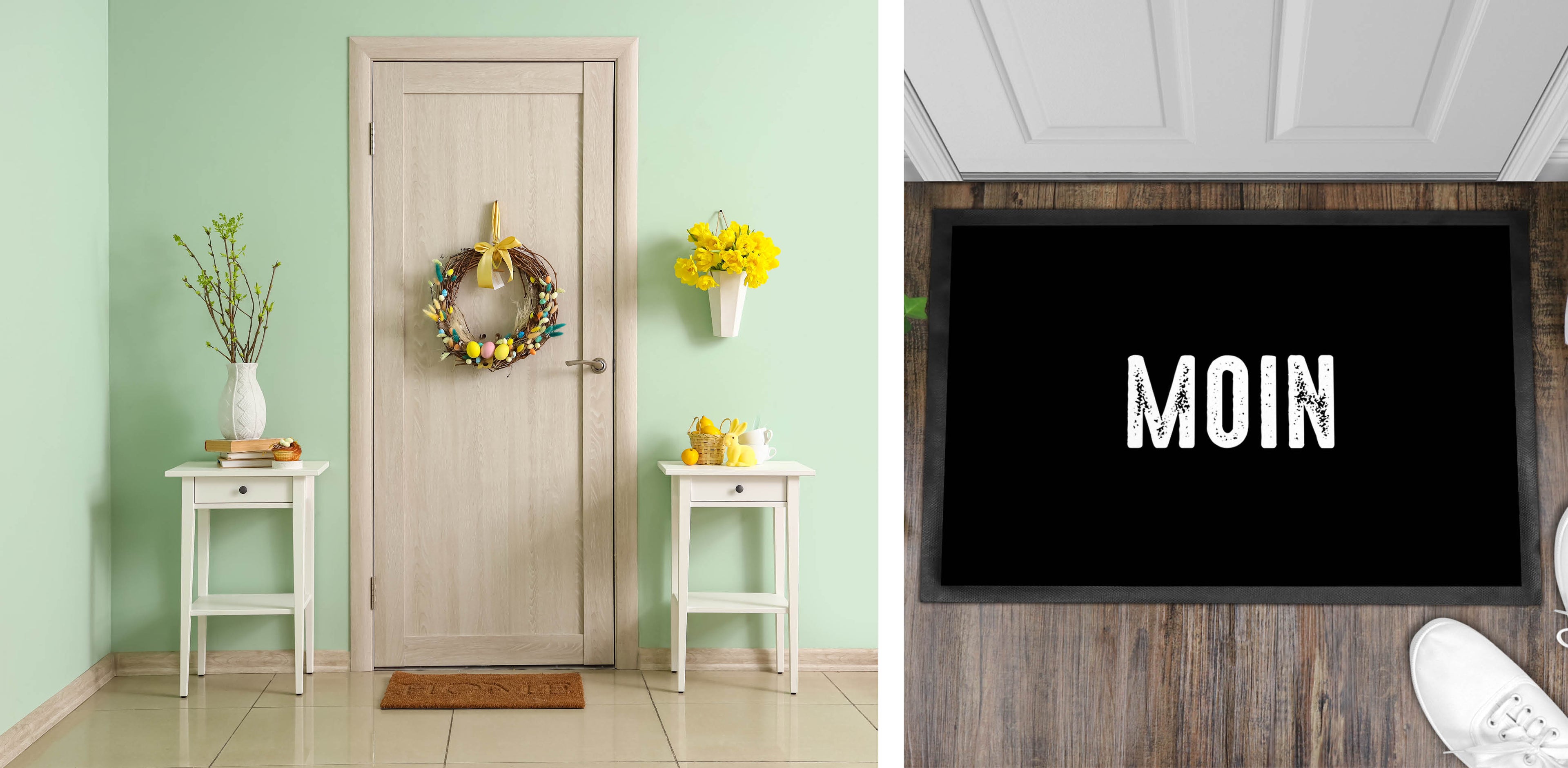 Fußmatte mit norddeutscher Begrüßung: "MOIN"Der perfekte erste Eindruck für alle, die’s nordisch, direkt und herzlich mögen.Ob morgens, mittags oder abends – hier sagt die Matte einfach mal „Moin“ und...