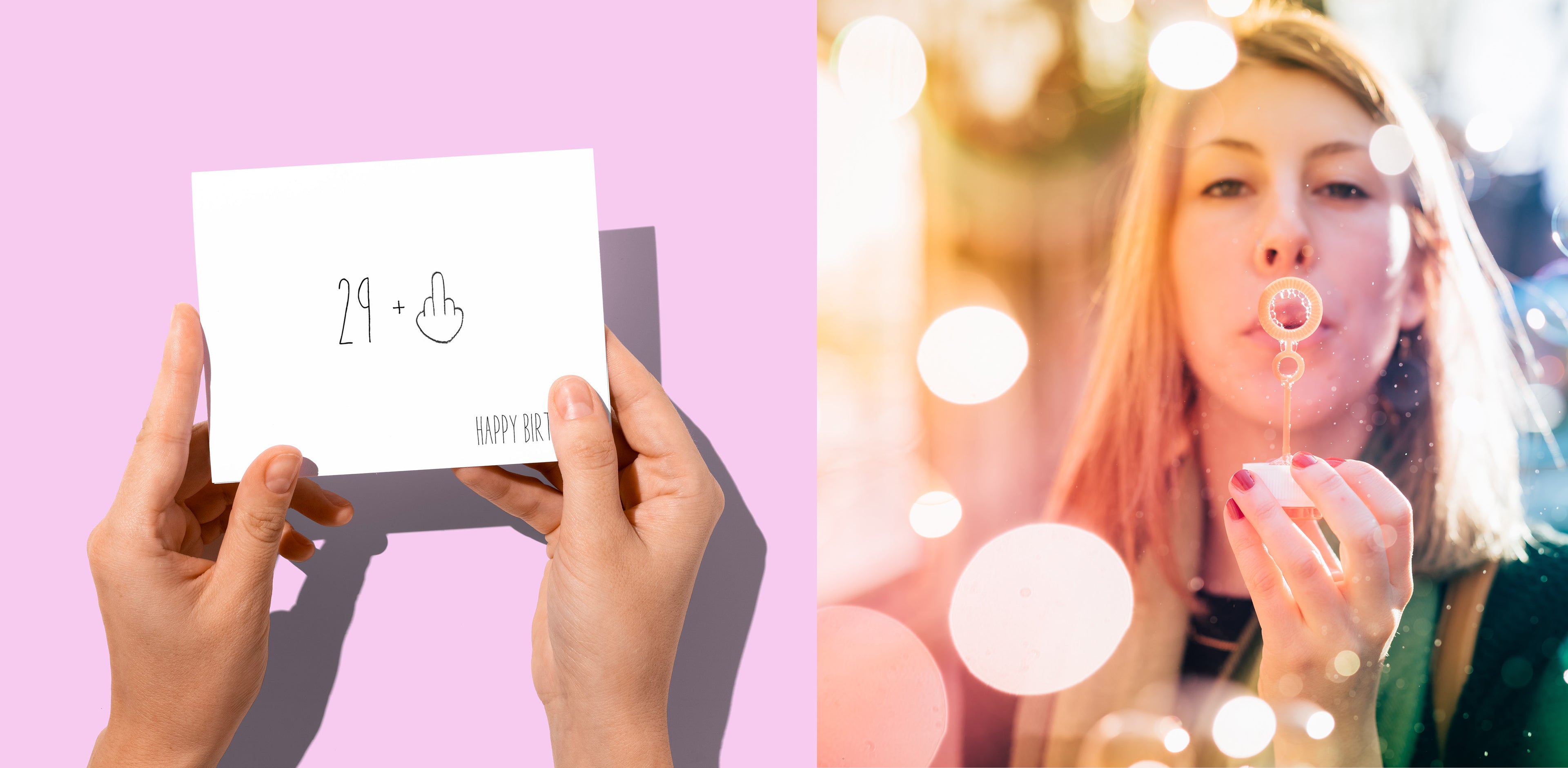 • Glückwunsch - Postkarte: 29 + Mittelfinger