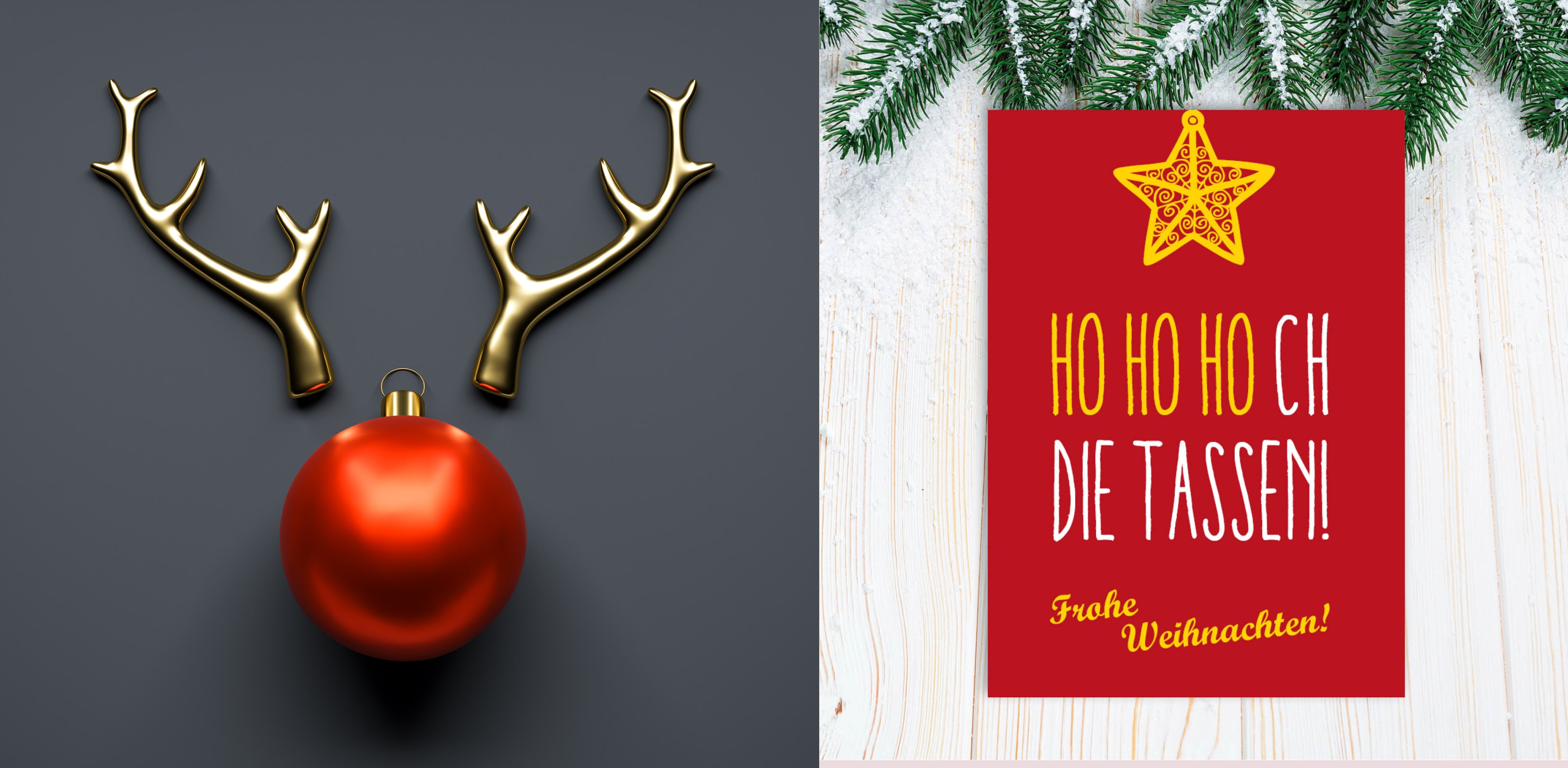 Weihnachtskarte: HO HO HOCH die Tassen! - rot