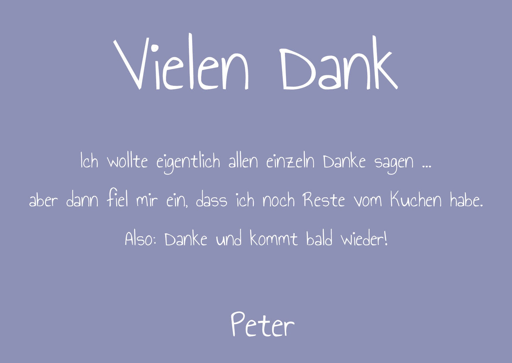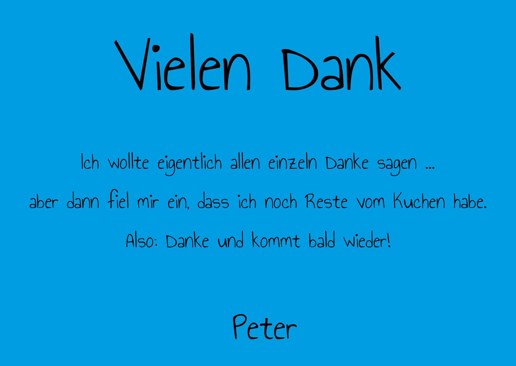 Unsere humorvolle Danksagungskarte zum Geburtstag bringt Dein „Danke“ genauso charmant rüber wie Du selbst: ehrlich, herzlich und mit einem Lächeln zwischen den Zeilen.
