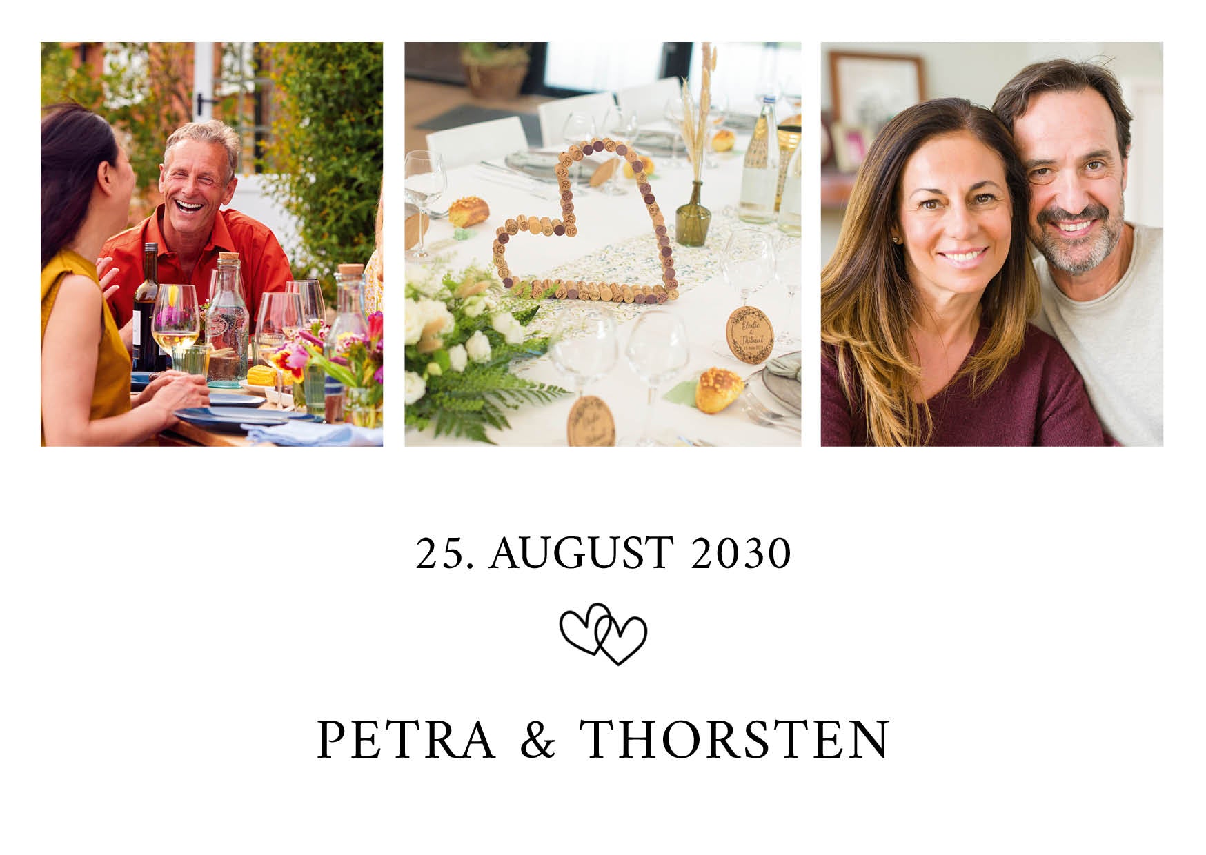 Das strahlende Weiß der Karte bildet die perfekte Bühne für eure Lieblingsmomente: das erste Lächeln, der Kuss, der Tanz, die innige Umarmung. Der Titel „Wahre Liebe“ steht dezent und stilvoll im Fokus – als Versprechen, das Ihr an Eure Gäste weitergebt: Diese Liebe ist echt - seit 25 Jahren und sie bleibt.