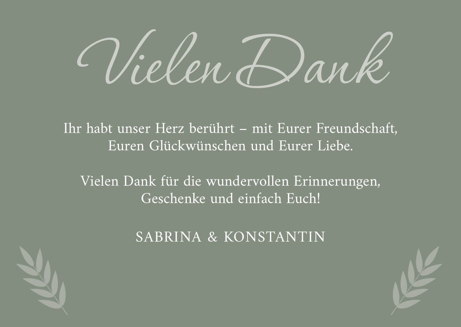 Danksagungskarten zur Hochzeit: Urlaubsfoto in Olive