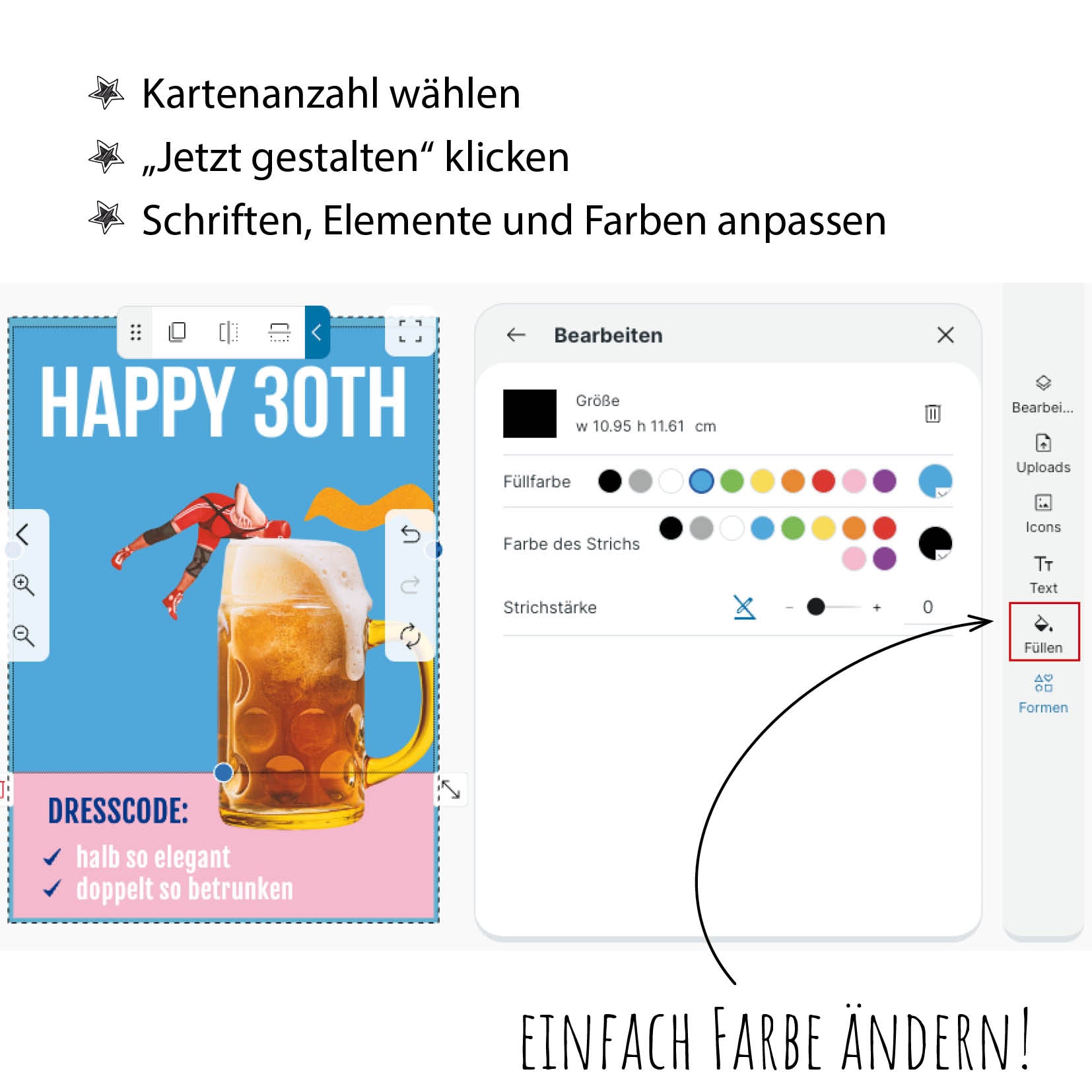 Gestalte Deine Einladung zum 30. Geburtstag einfach online selbst und feiere eine irre Party!