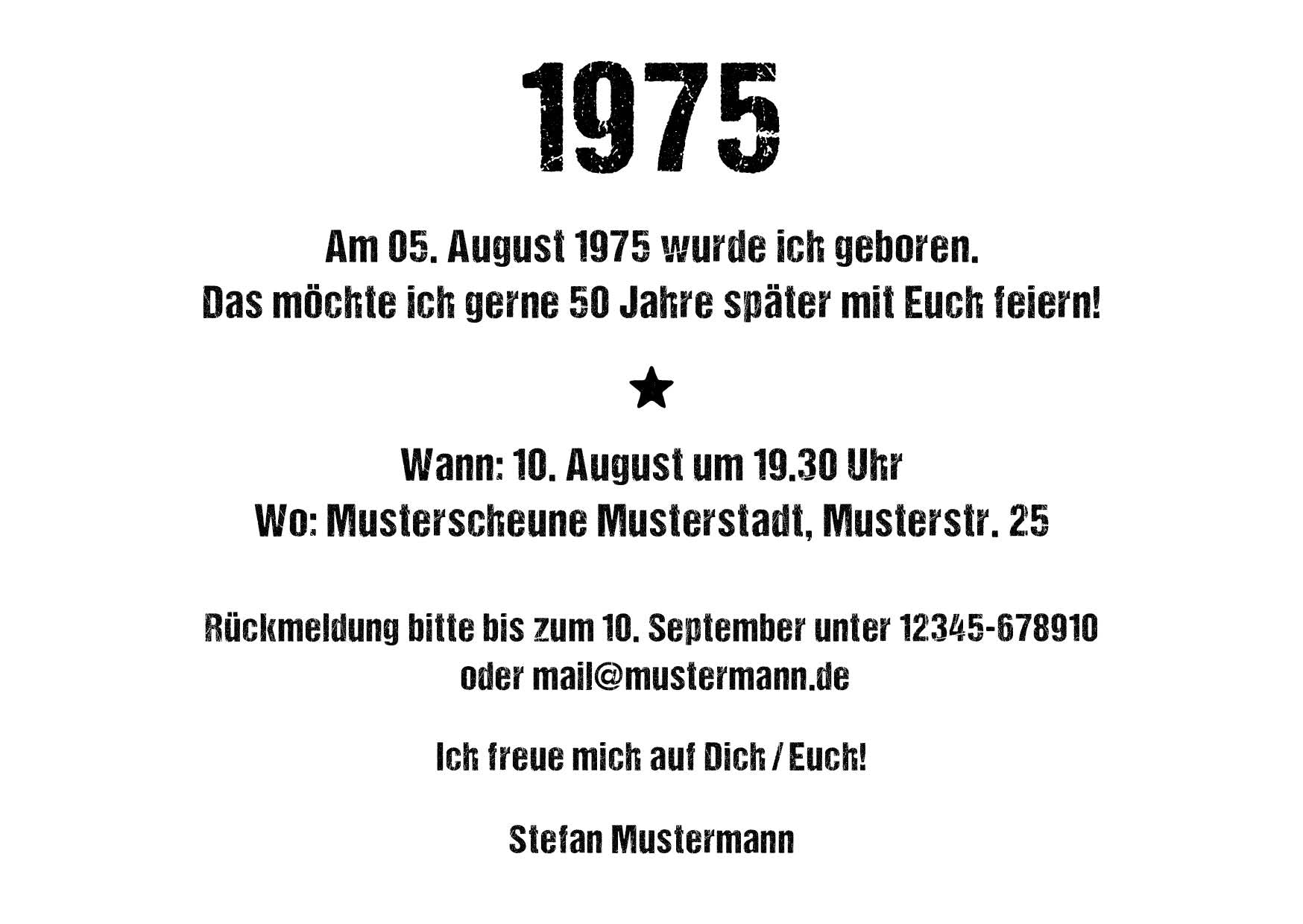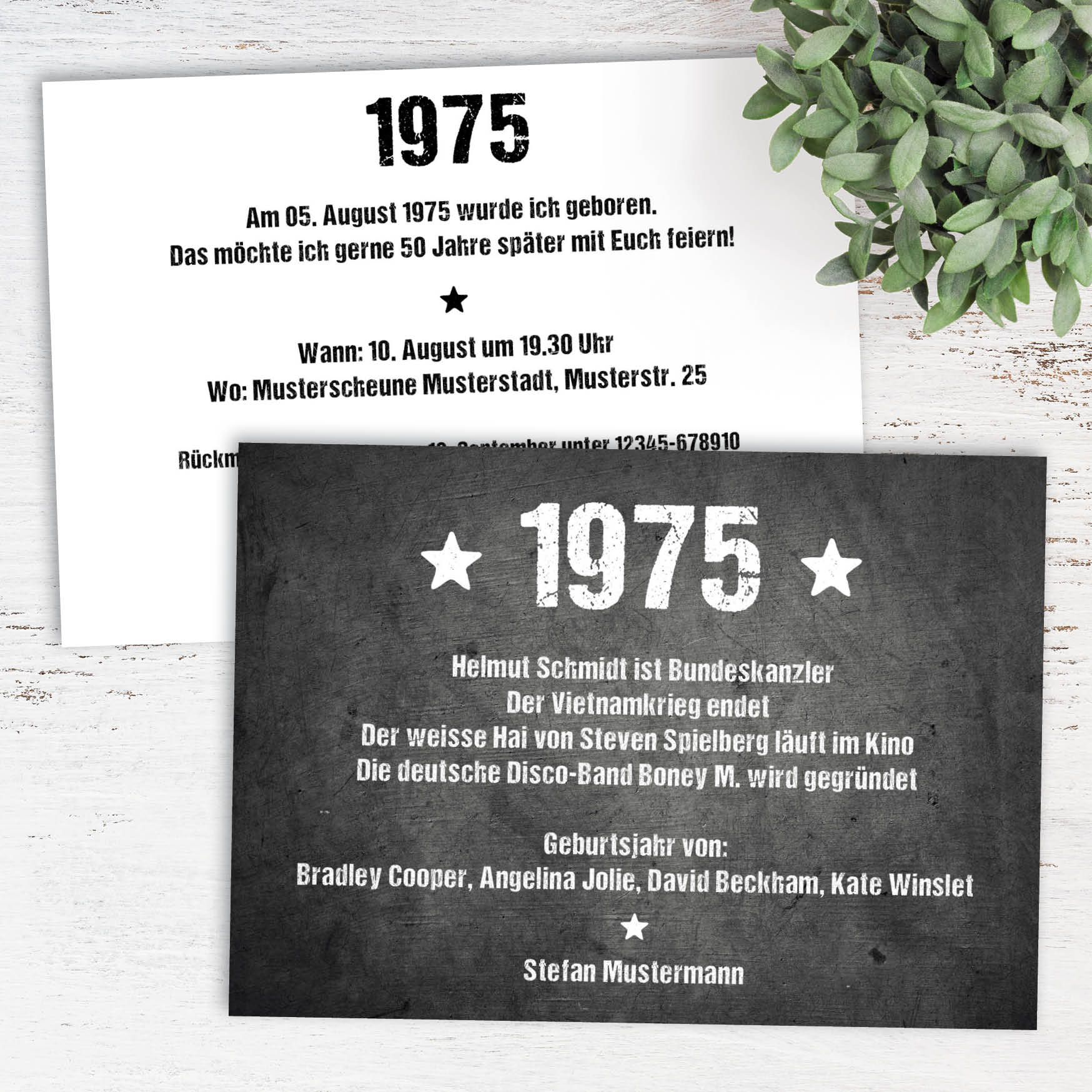 Einladung zum 50. Geburtstag mit Ereignissen des Jahrgangs 1975 🤩