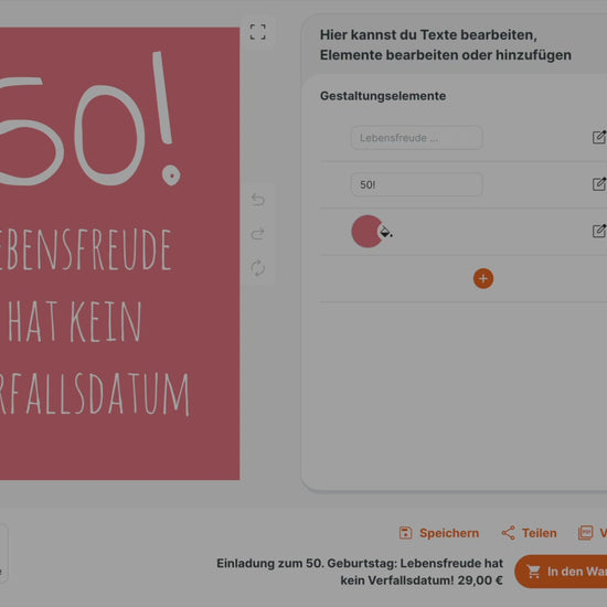 Jetzt gestalten, verschicken – und den 50. Geburtstag unvergesslich machen!