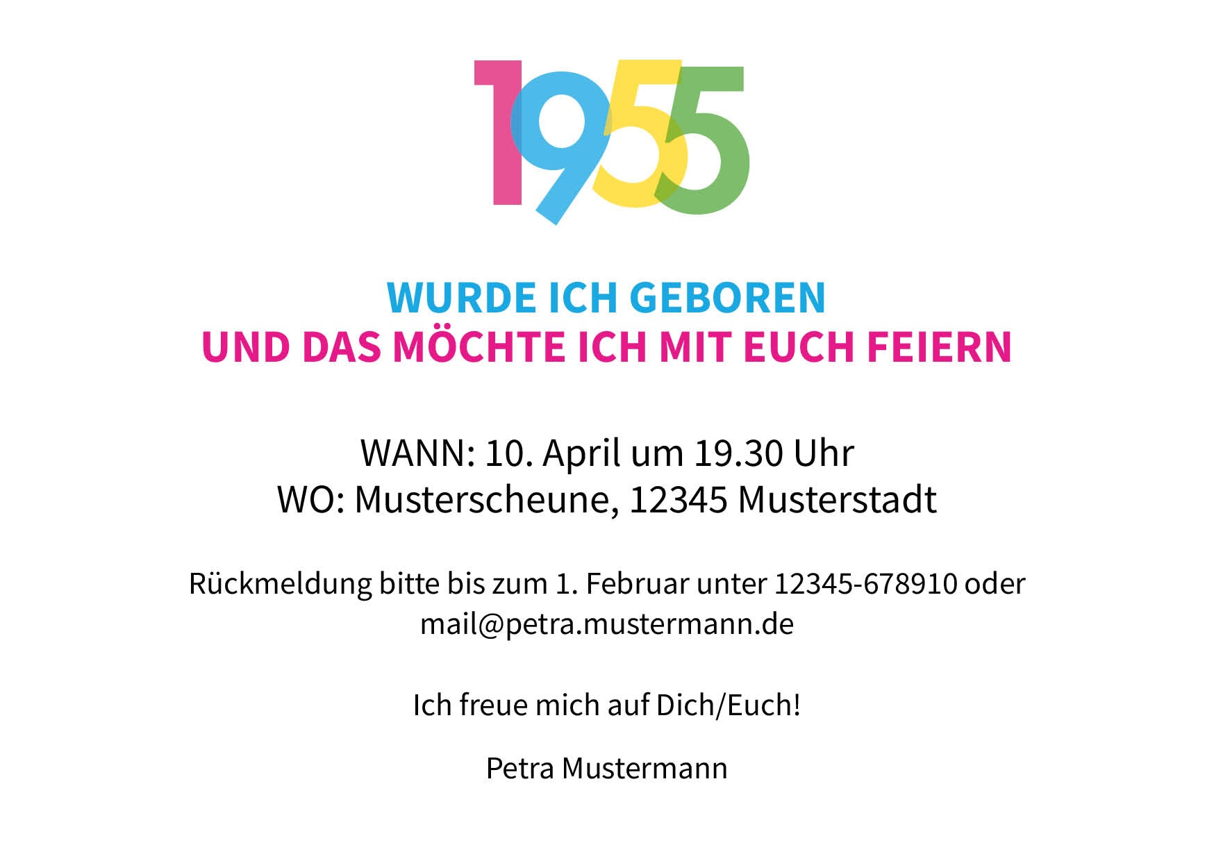 Einladung zum 70. Geburtstag: Jahreszahl 1955