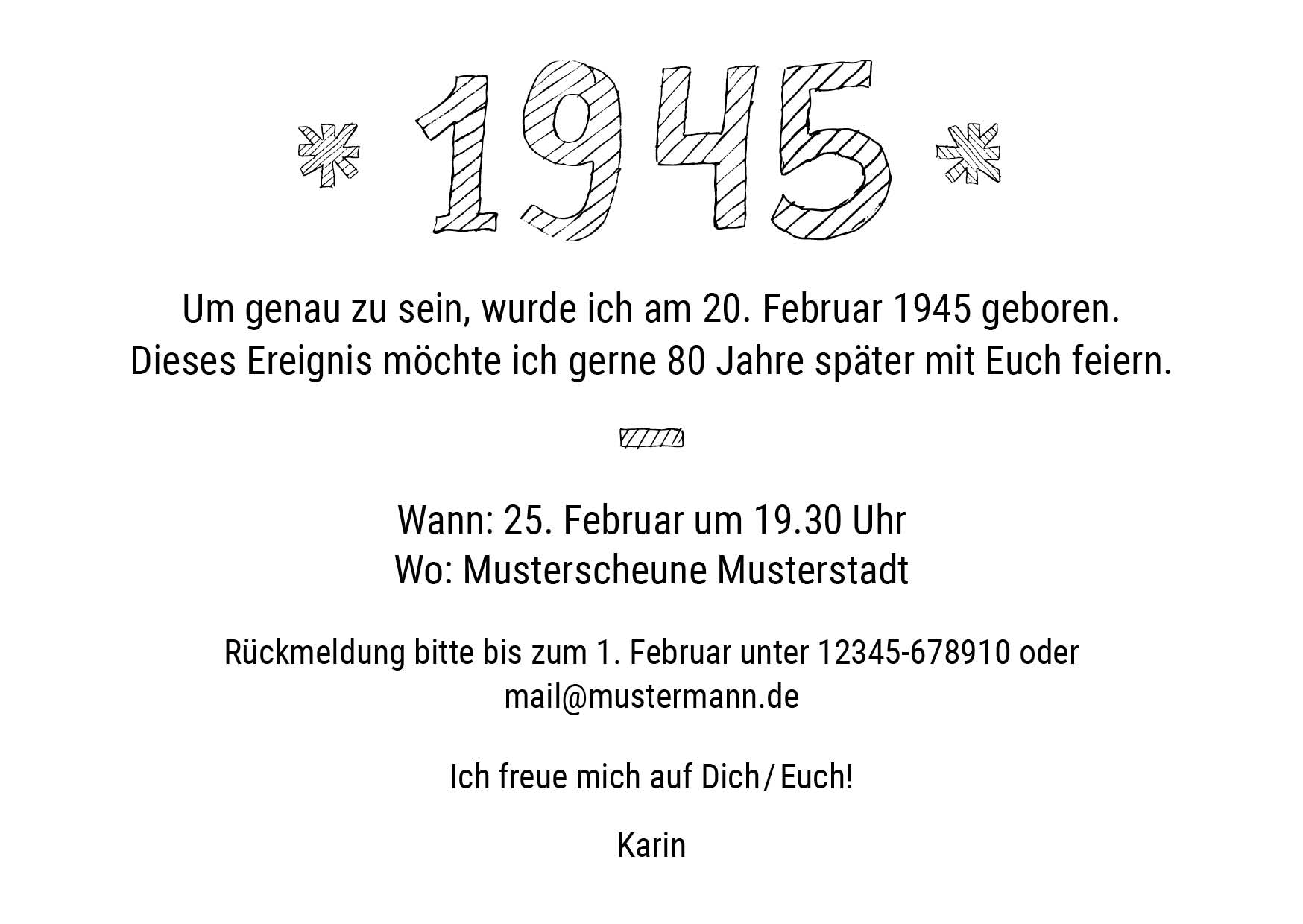 Einladung zum 80. Geburtstag: Ereignisse aus dem Jahr 1945