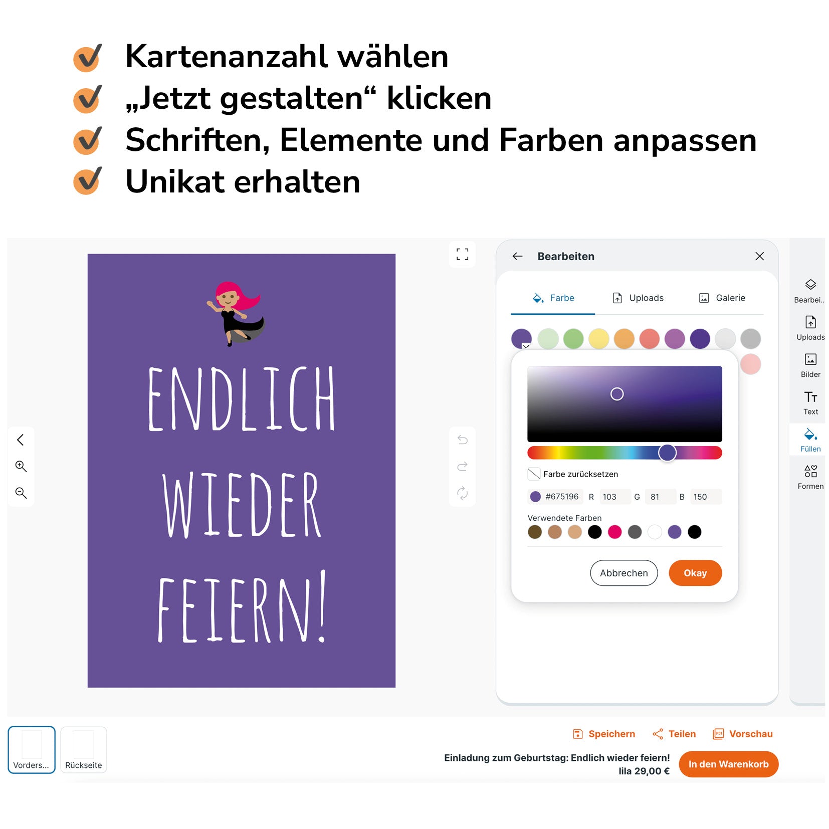 Farbe, Text, Bild – gestalte Deine Einladung so einzigartig wie Deine Feier.