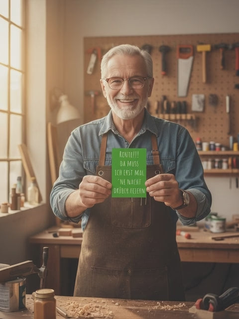 Der Spruch trifft den Nerv: leicht frech, herzlich und genau richtig für alle, die Humor als beste Übergangsmedizin in die Rente sehen.