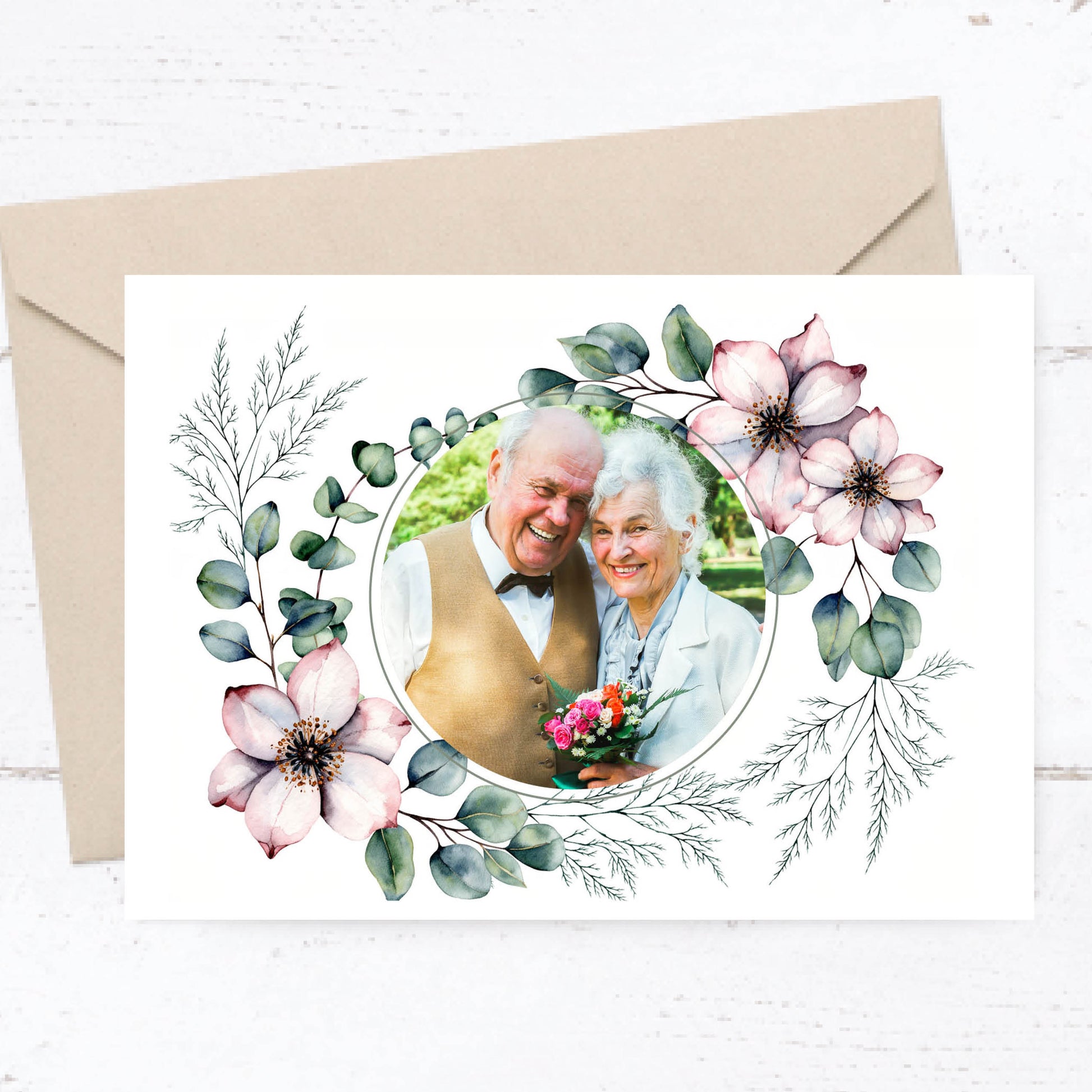 Einladung zur Goldenen Hochzeit: Romantische Blumen mit Foto