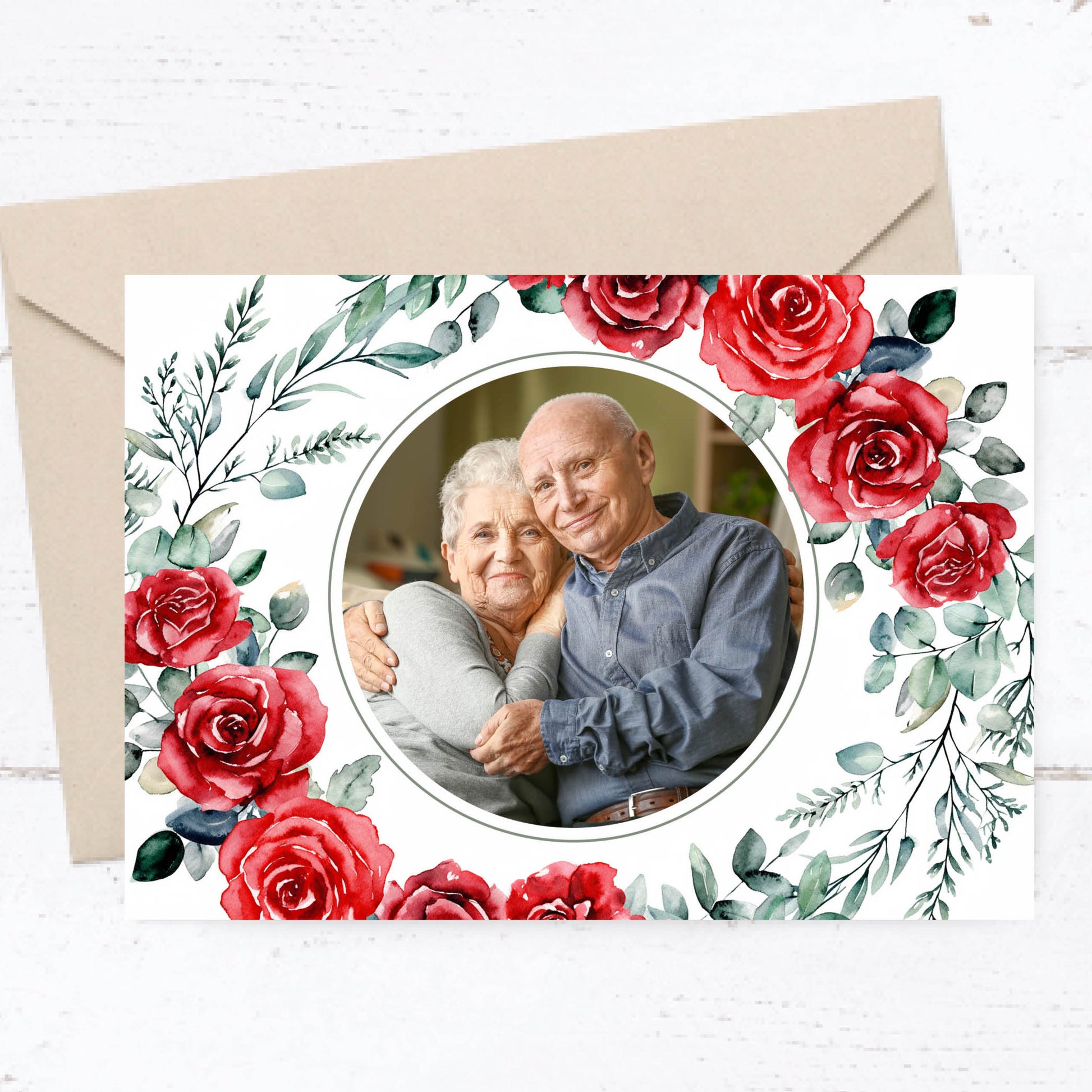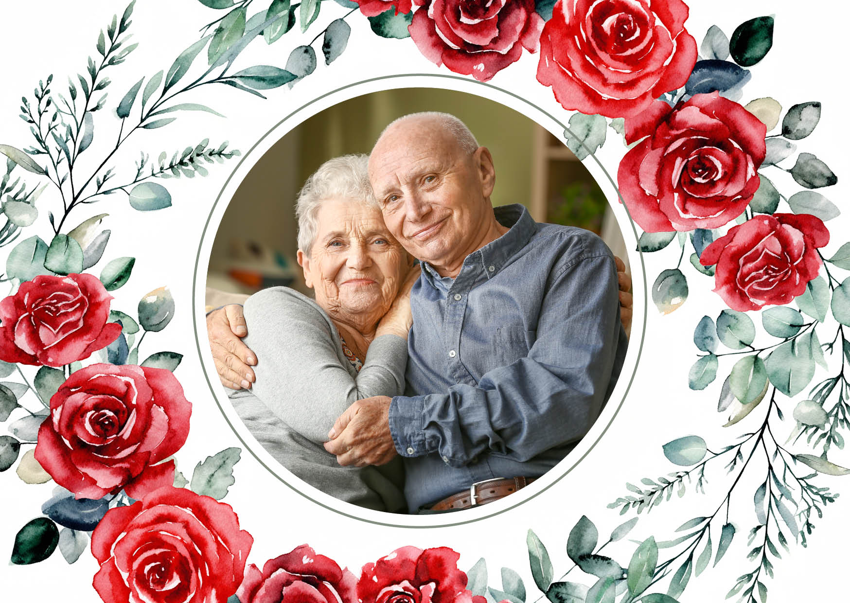 Einladung zur Goldenen Hochzeit: Romantische Rosen mit Foto