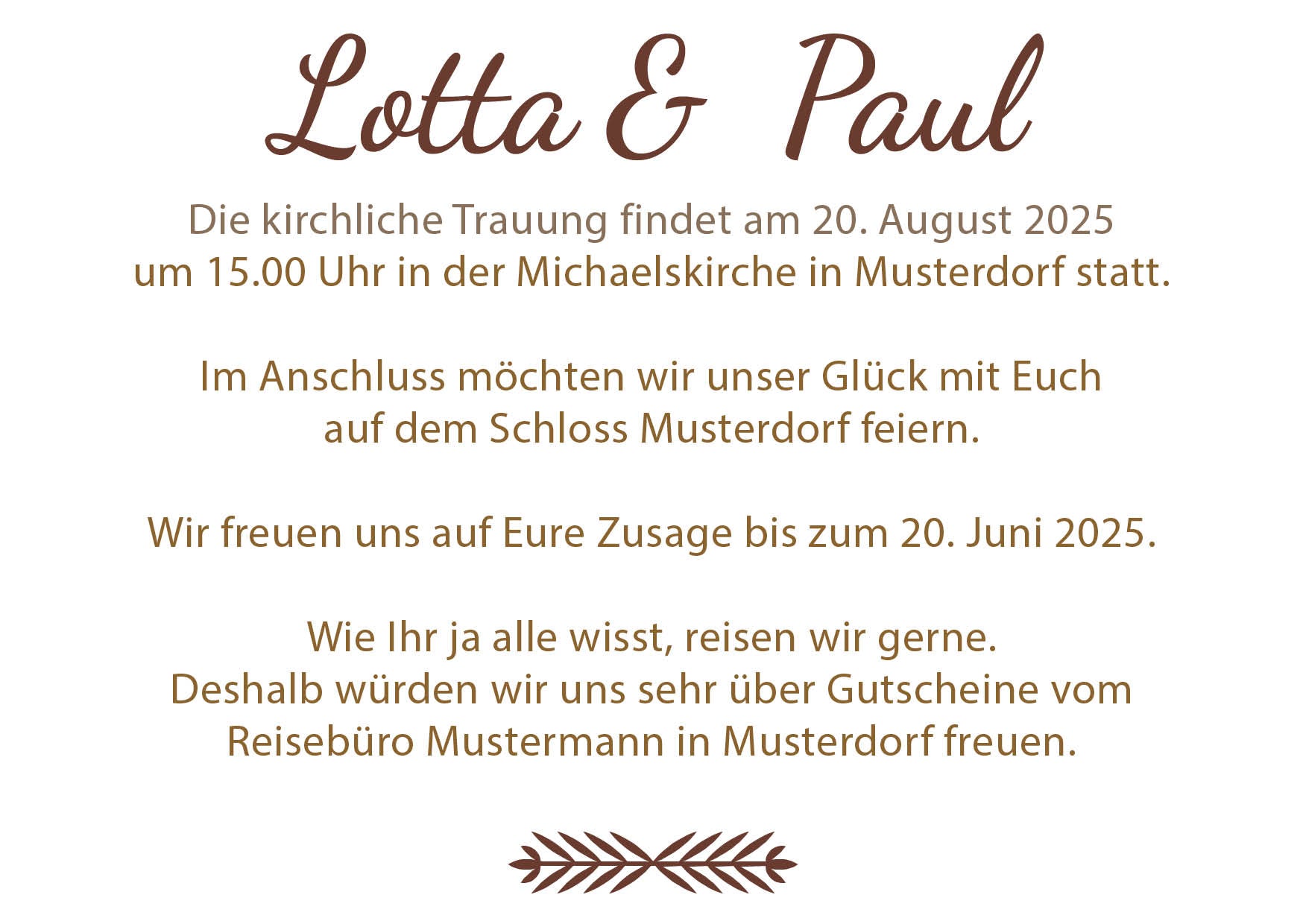 🥂 Fazit: Rustikal trifft romantisch – Eure Einladung macht Lust auf ein Fest voller Liebe, Lachen und Natur-Feeling.