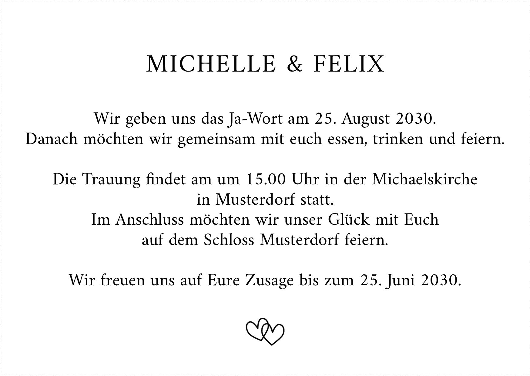 Im Warenkorb gibt es ein Mitteilungsfeld. Bitte gebe Deinen gewünschten Text in dem Textfeld im Warenkorb ein. Nach Bestelleingang nehmen wir per E-Mail Kontakt zu Dir auf und stimmen wir den Entwurf mit Dir ab, bis Du uns die Druckfreigabe erteilst. -