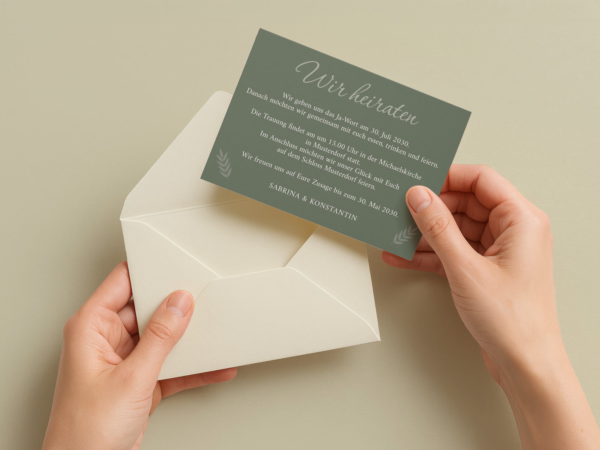 👉 Fazit: Eine Einladung, die zeigt: Diese Hochzeit ist kein Termin, sondern ein Erlebnis. Elegant, modern, unvergesslich – wie Ihr.