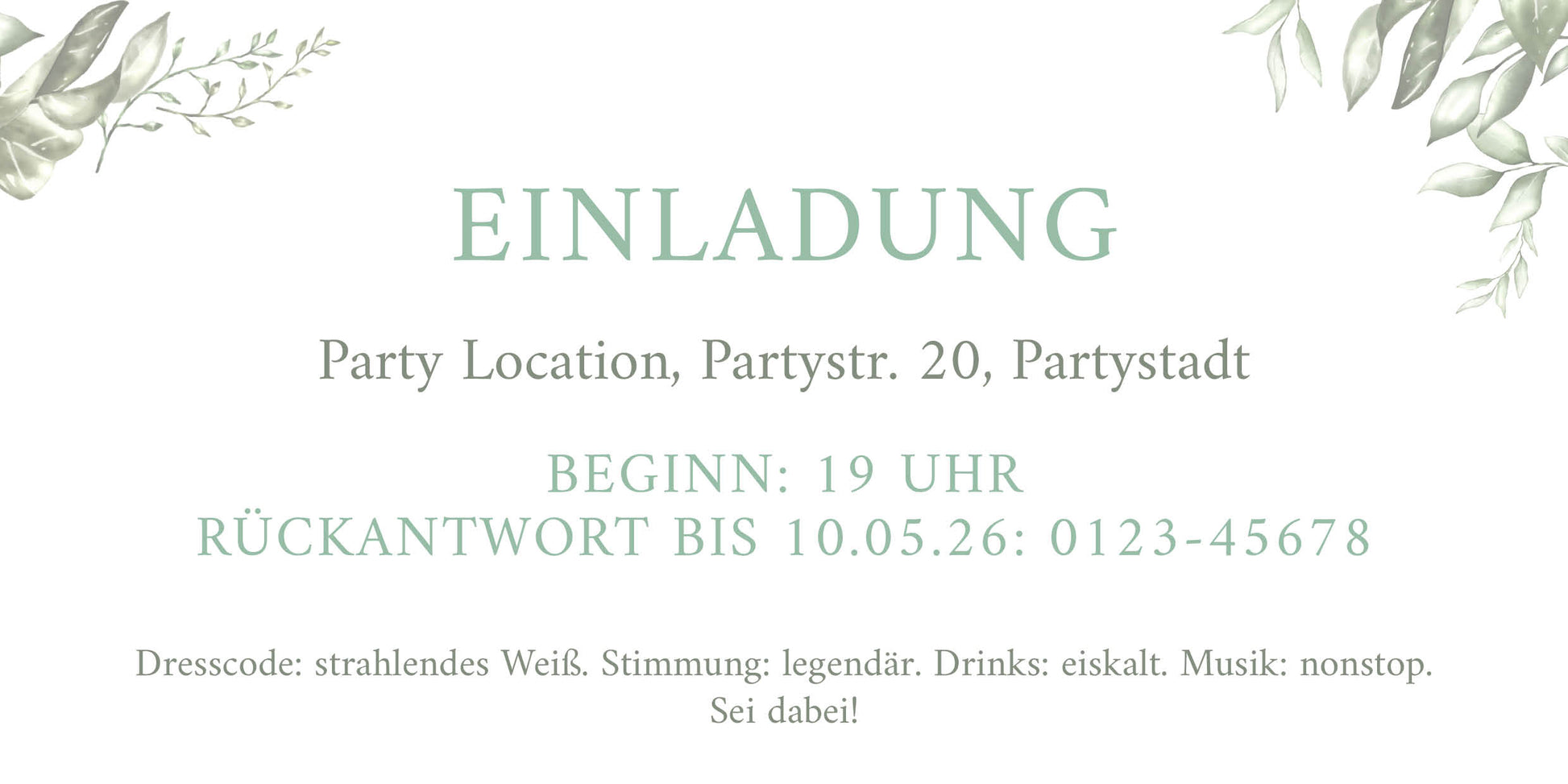 Ob Barfuß im Sand oder mit einem Glas Champagner in der Hand – mit dieser Karte beginnt Deine Party schon beim Versenden.