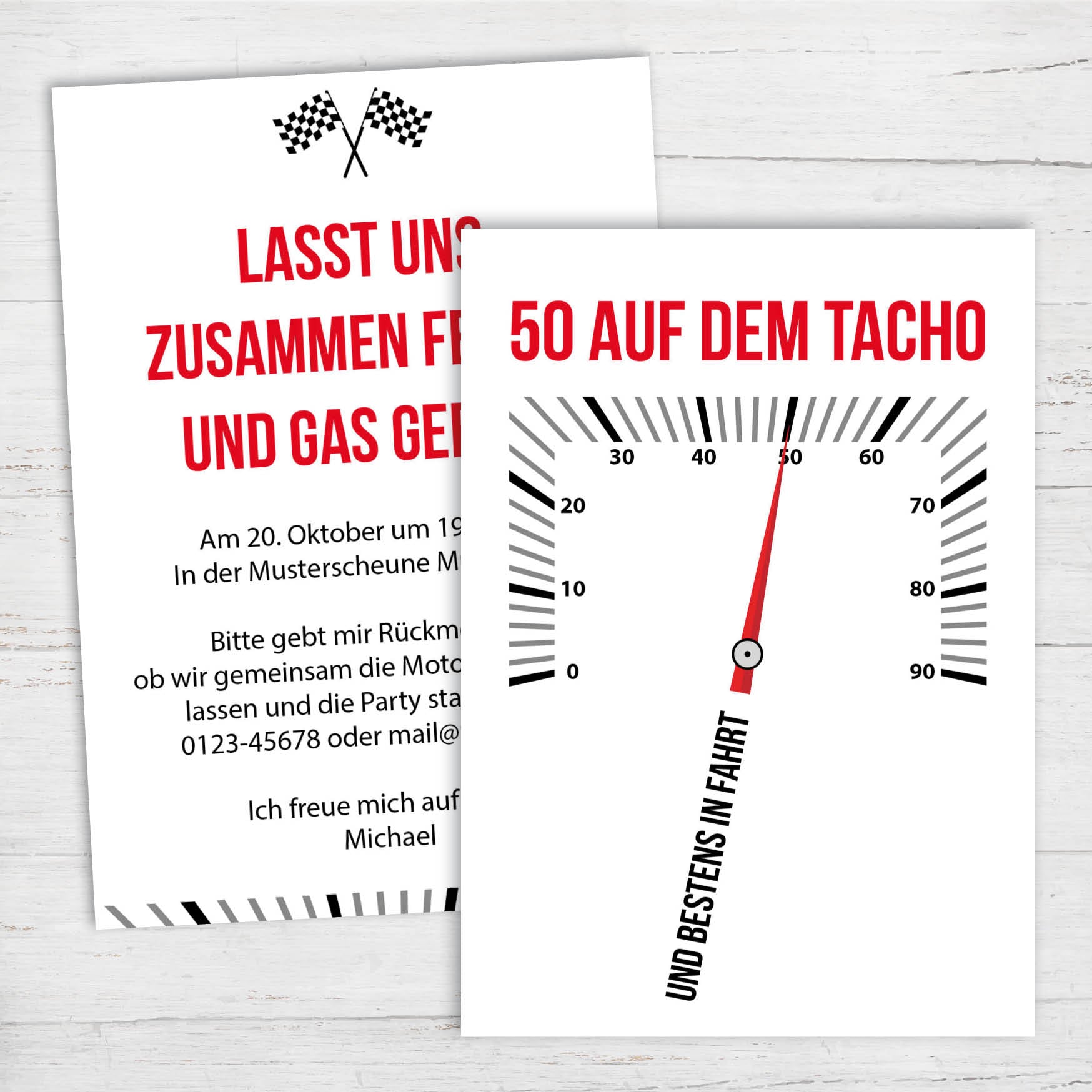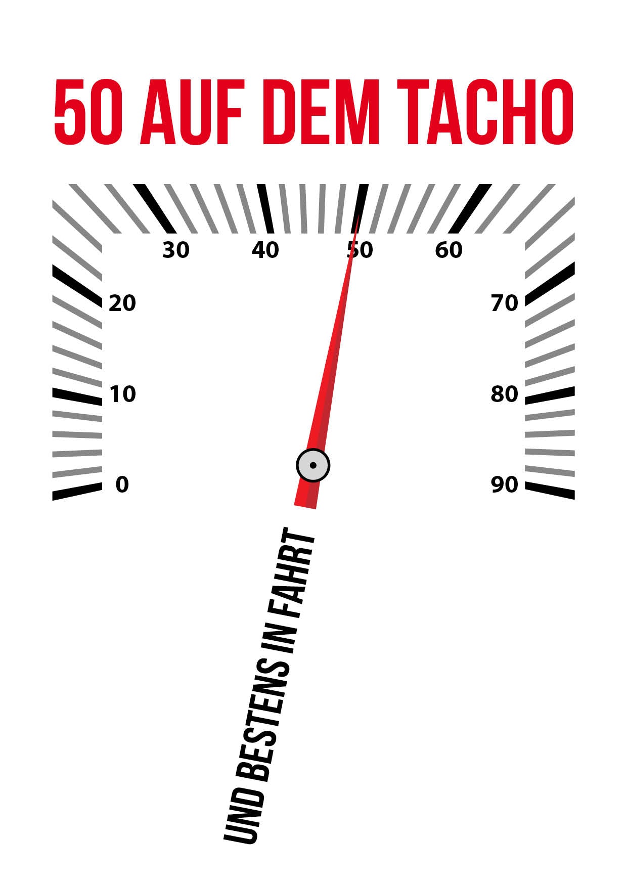 Einladung zum 50. Geburtstag – 50 auf dem Tacho… und bestens in Fahrt