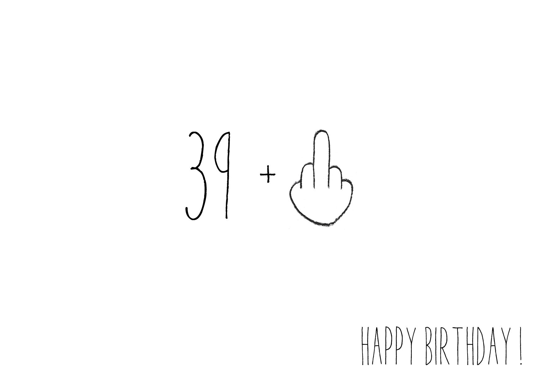 Glückwunsch - Postkarte: 39 + Mittelfinger