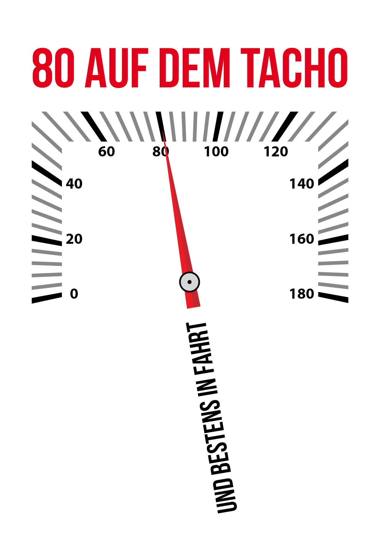 Glückwunsch Postkarte zum 80. Geburtstag – 80 auf dem Tacho… und bestens in Fahrt