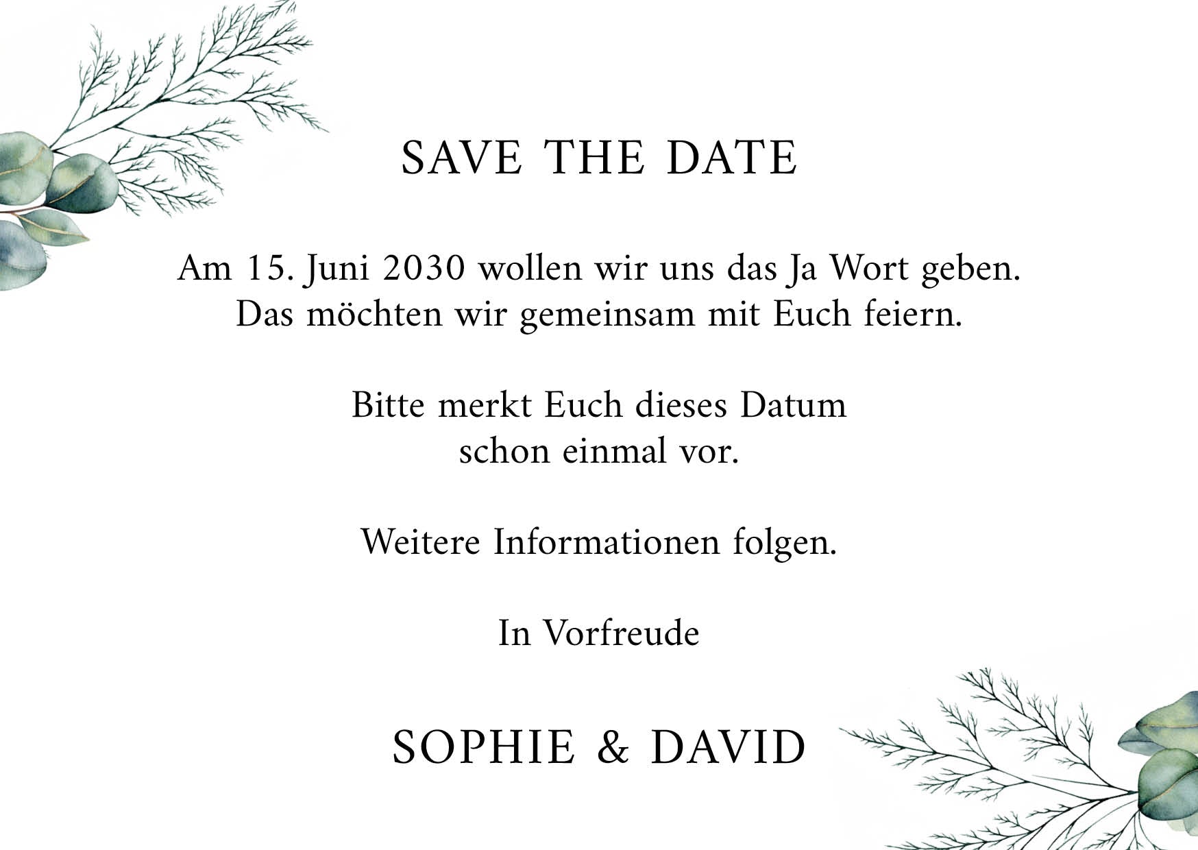 Mit Romantic Flowers kündigt Ihr Euren großen Tag auf stilvolle, elegante Art an. Zarte Blüten, sanfte Farben und klassische Typografie erzeugen sofort Vorfreude auf Eure Hochzeit. Diese Save-the-Date-Karte vereint zeitlose Eleganz mit moderner Leichtigkeit. Ideal für Paare, die Klassik lieben, ohne auf persönliche Note zu verzichten.