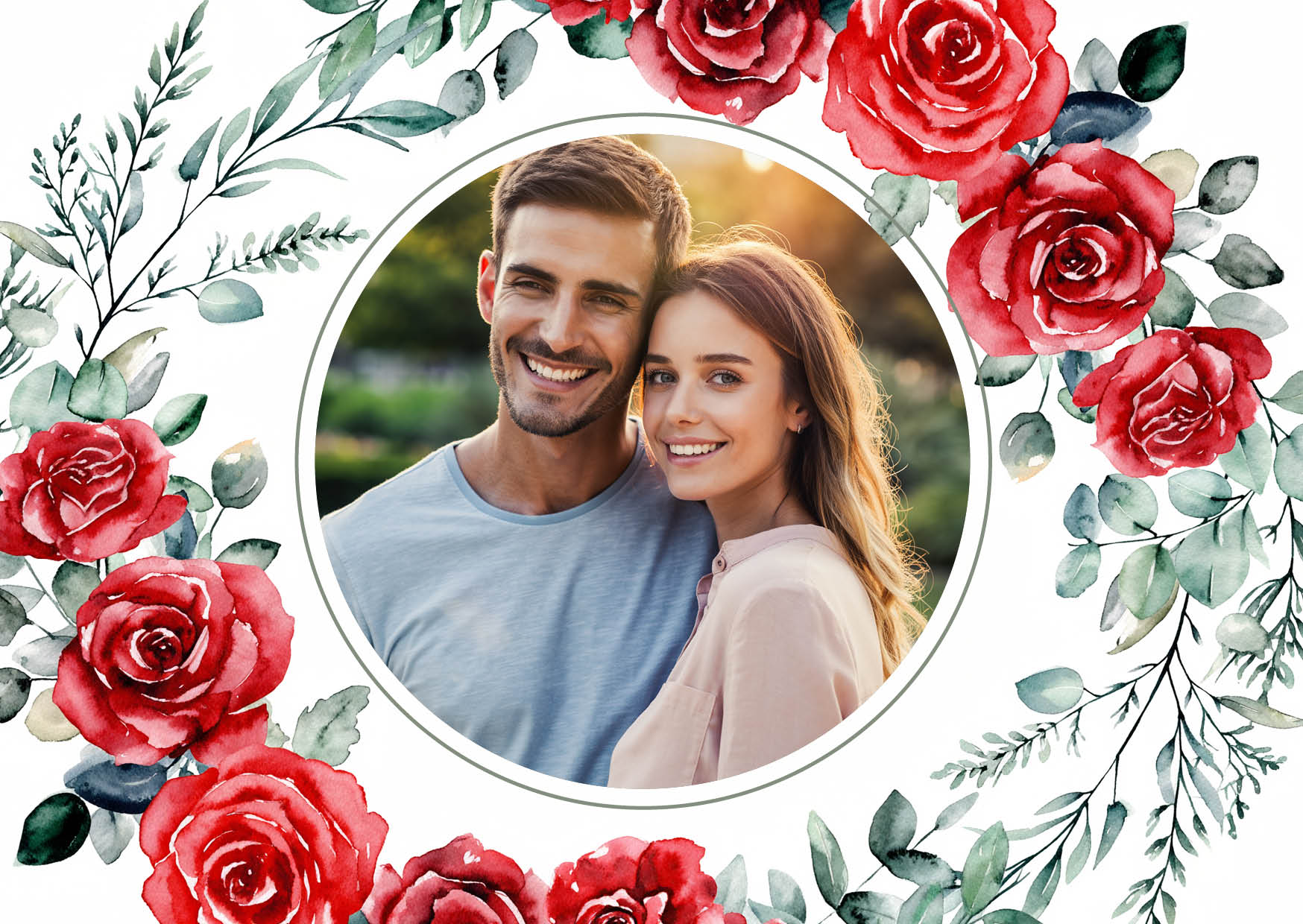 Mit dem klassischen Rosendesign in sanften, warmen Farbtönen kündigt Ihr Euren besonderen Tag stilvoll an. Zarte Blüten, dezente Typografie und eine edle Komposition machen die Karte zum ersten, unvergesslichen Gruß Eurer Hochzeit.